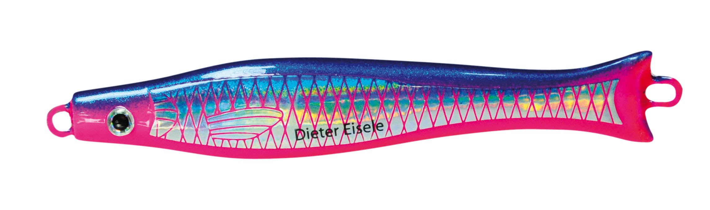 Pro-Select ist der Kult-Pilker aus dem Eisele-Meeresprogramm. Er ist sehr fängig, denn seine leicht gebogene Form verleiht ihm ein verführerisches Spiel. Durch seinen spitzen Kopf ist er schnell in der gewünschten Tiefe und wird dann mit leichten Zupfern zur Geheimwaffe. Die ausladende Schwanzflosse verleiht dem Köder den richtigen Drall und eine gute Silhouette, die beim Speedjiggen in Norwegen die großen Seelachse verführt. Sein Fanclub weiß das!